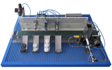 结构组成:物料分拣电气模块、直流减速电机、光纤传感器、光电传感器、实验物料、料仓、大铝板、手柄、铝型材、输送带、涨紧结构、双作用气缸、电磁阀、接近开关等技术数据。